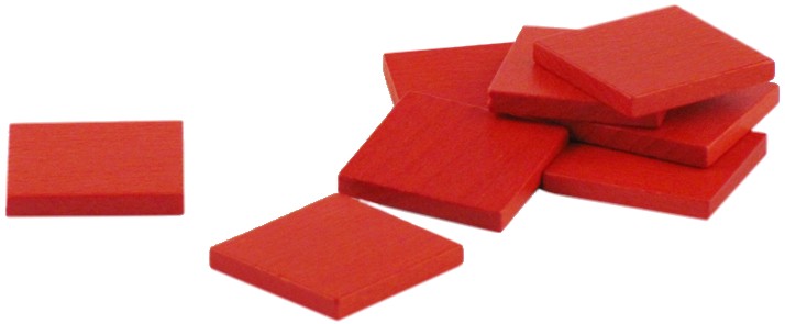 Farbig lackierte Holzplättchen zur Arbeit mit dem Hunderter- und Einmaleinsbrett (66401). Können mit Folienstiften auch selbst beschriftet werden!